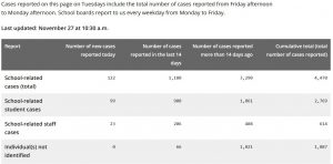 Reported COVID-19 cases in Ontario schools and licensed child care settings are posted online and updated weekly by the provincial government.