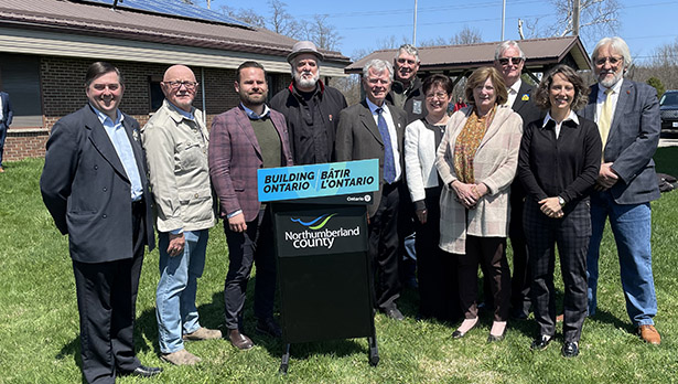 Above image, Brighton Mayor Brian Ostrander, Northumberland County Warden Bob Crate, MPP David Piccini, Alderville Chief, Dave Mowat, Port Hope Mayor Bob Sanderson, Alnwick/Haldimand councillor Jim Hogg, Northumberland County Chief Administrative Officer Jennifer Moore, Alnwick/Haldimand Mayor Gail Latchford, Cobourg Mayor John Henderson, Northumberland County Grant Writer Jennifer Hardy-Parr & Director of Economic Development and Tourism Dan Borowec.