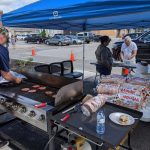 The Fire Chief Tim Blake was cooking burgers and hot dogs along with other firefighters and the chief’s wife Kim and other volunteers were serving and helping.
