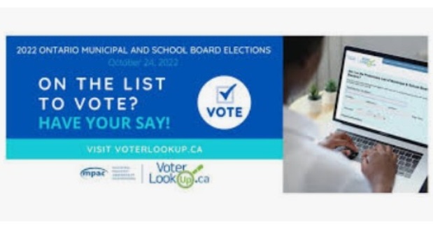 The Voters’ List is prepared from data kept by the Municipal Property Assessment Corporation (MPAC). Updating this information will help to ensure that the municipal Voters’ List are accurate and up-to-date in preparation for the Municipal and School Board election happening in October.