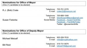Trent Hills Municipal Election Mon., Oct. 24, 2022