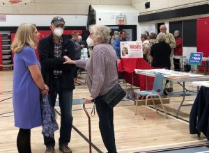 Mayoralty Candidate Susan Fedorka, left, talks with people at the event