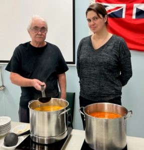 From the moment I walked into the hall with a friend, Sherry Shorthouse, who was my ride as well, (also a familiar sight at community kitchens in other towns she has lived) to try out this new lunch, which if I haven’t made clear before, is FREE to anyone and everyone, the warmth of the volunteers was only outdone by the hot soups that made up part of the meal.