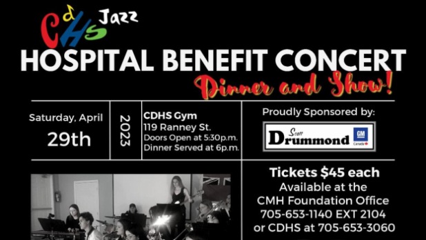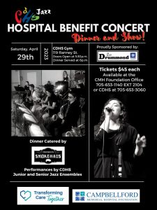 The Campbellford District High School (CDHS) Music Program is hosting it’s annual Fundraising Concert for the Hospital this coming Saturday, April 29th. The show will feature performances by the CDHS Junior and Senior Jazz Ensembles, as well as a fabulous dinner catered by Friesen’s Smokehaus.