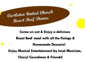 Castleton United Church Roast Beef Dinner Fundraiser: Local Musicians Castleton United Church Roast Beef Dinner Fundraiser Saturday March 24th, 2018 Castleton United Church Fundraiser Saturday, March 24 – 5:00… Sue Dickens March 12, 2018