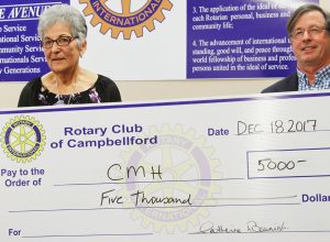 Rotary Club of Campbellford Gives Back image above: Past President Marion Fennell, left, presented a cheque for $5,000, to Campbellford Memorial Hospital Board Director Craig Hitchman.… Sue Dickens January 20, 2018
